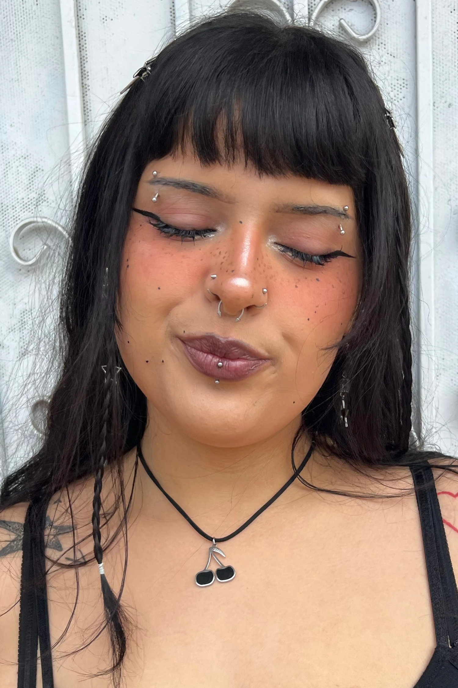 Stainless steel and black enamel cherry pendant on cord necklace!