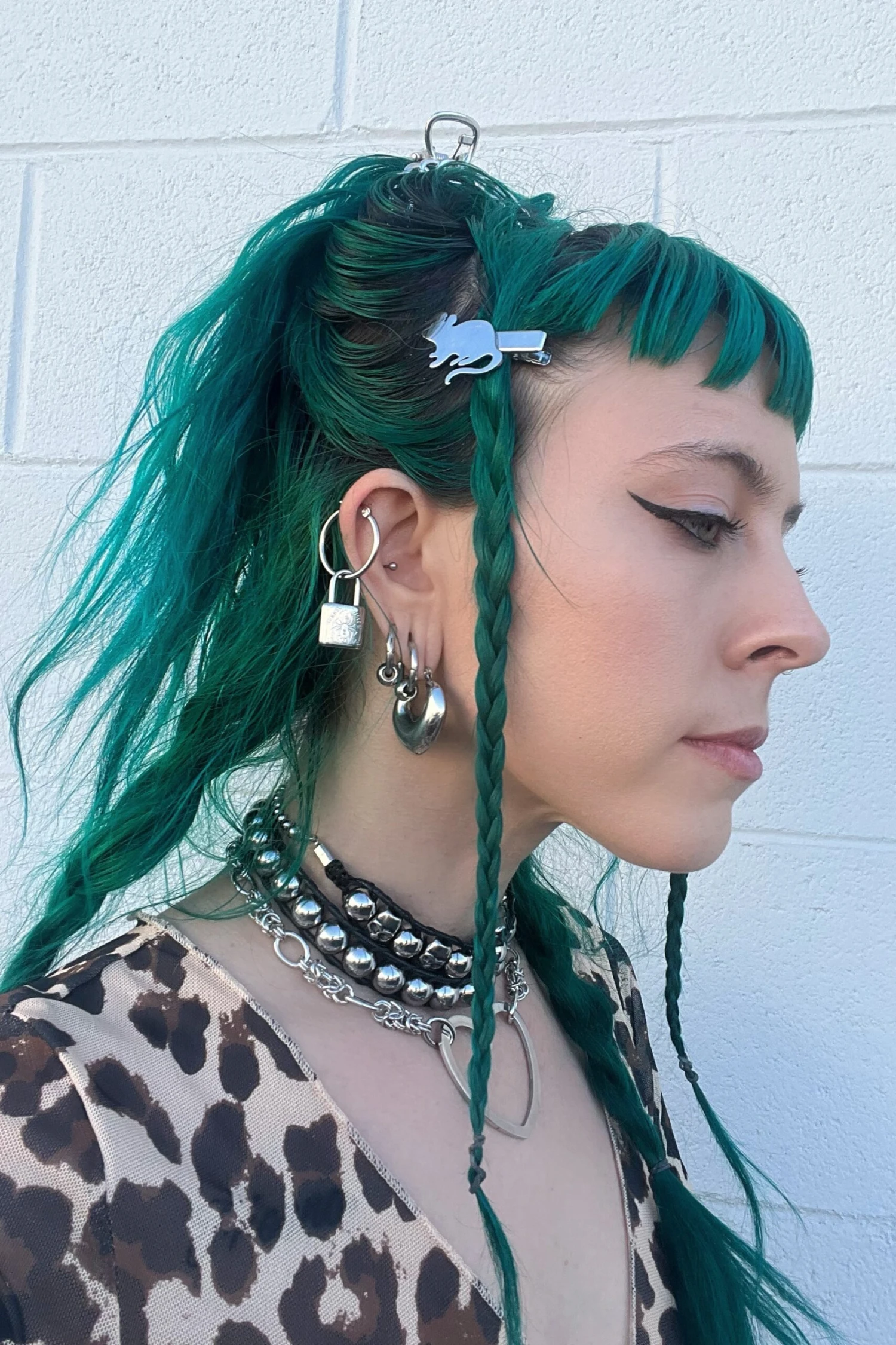Woven black cord choker with stainless steel jumbo skull and ball-chain style beads!