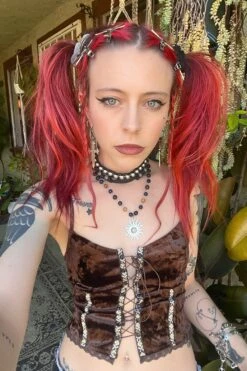 Our model Madeline is 5’3″ with 24″ waist, 32″ bust, and 36″ hips; they usually wear size XS and are pictured in a size XS.