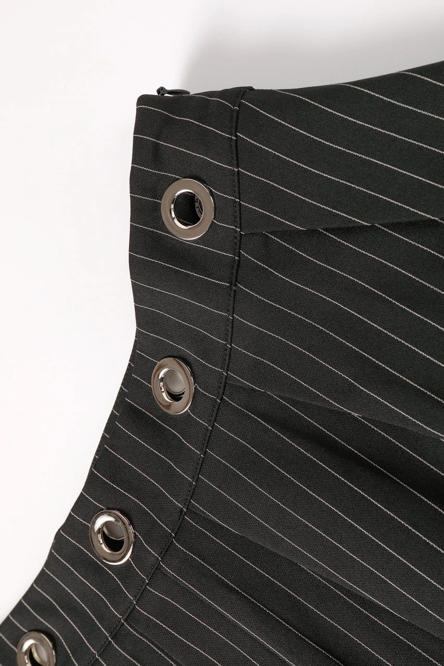 Mini skirt with grommet holes around and knife pleats! Low rise for sizes XXS-2X, high rise for sizes 2X-5X.