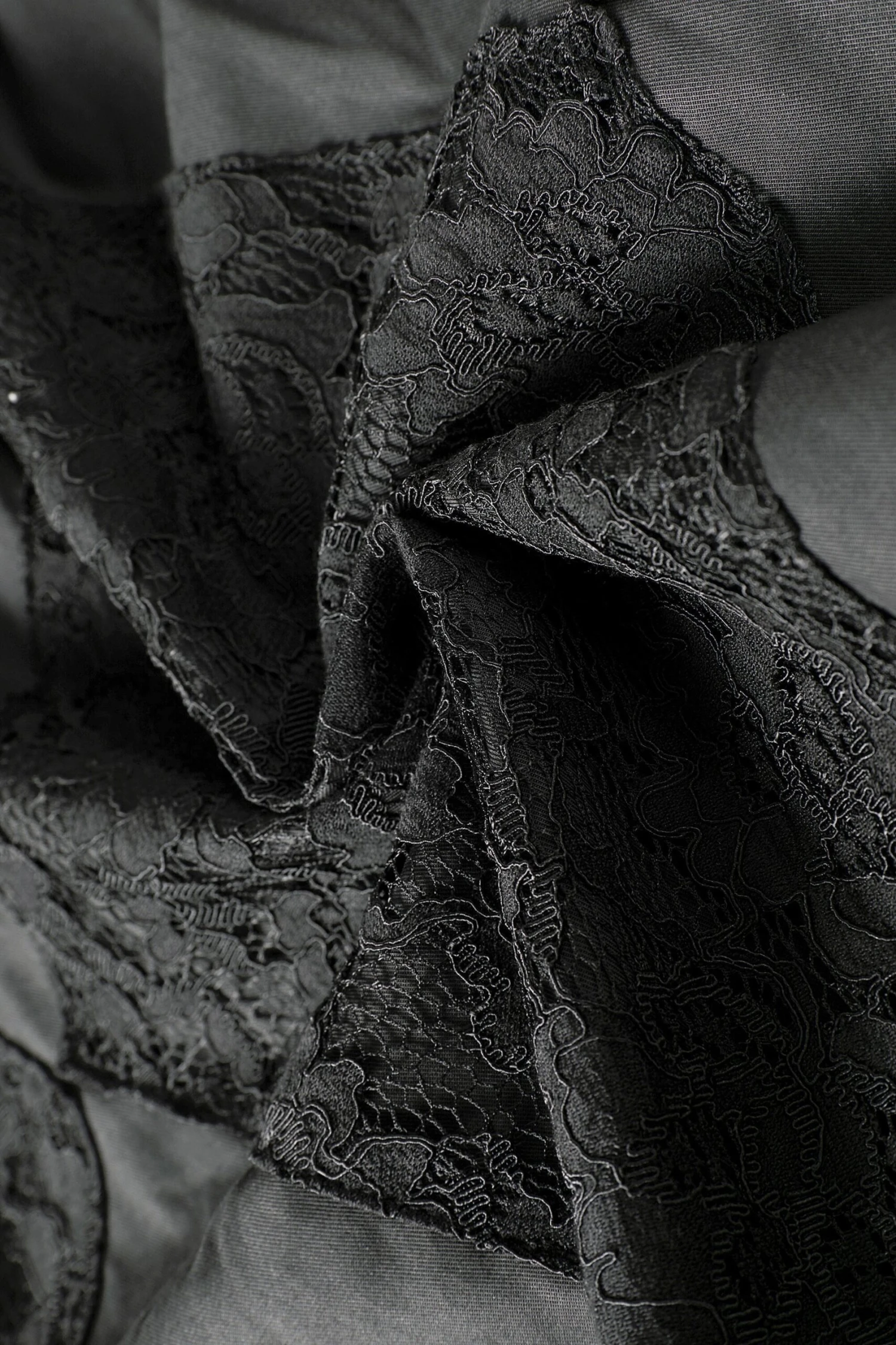 Maxi skirt with asymmetric handkerchief hem and grommet lacing accents! Stretch waistband with tie.