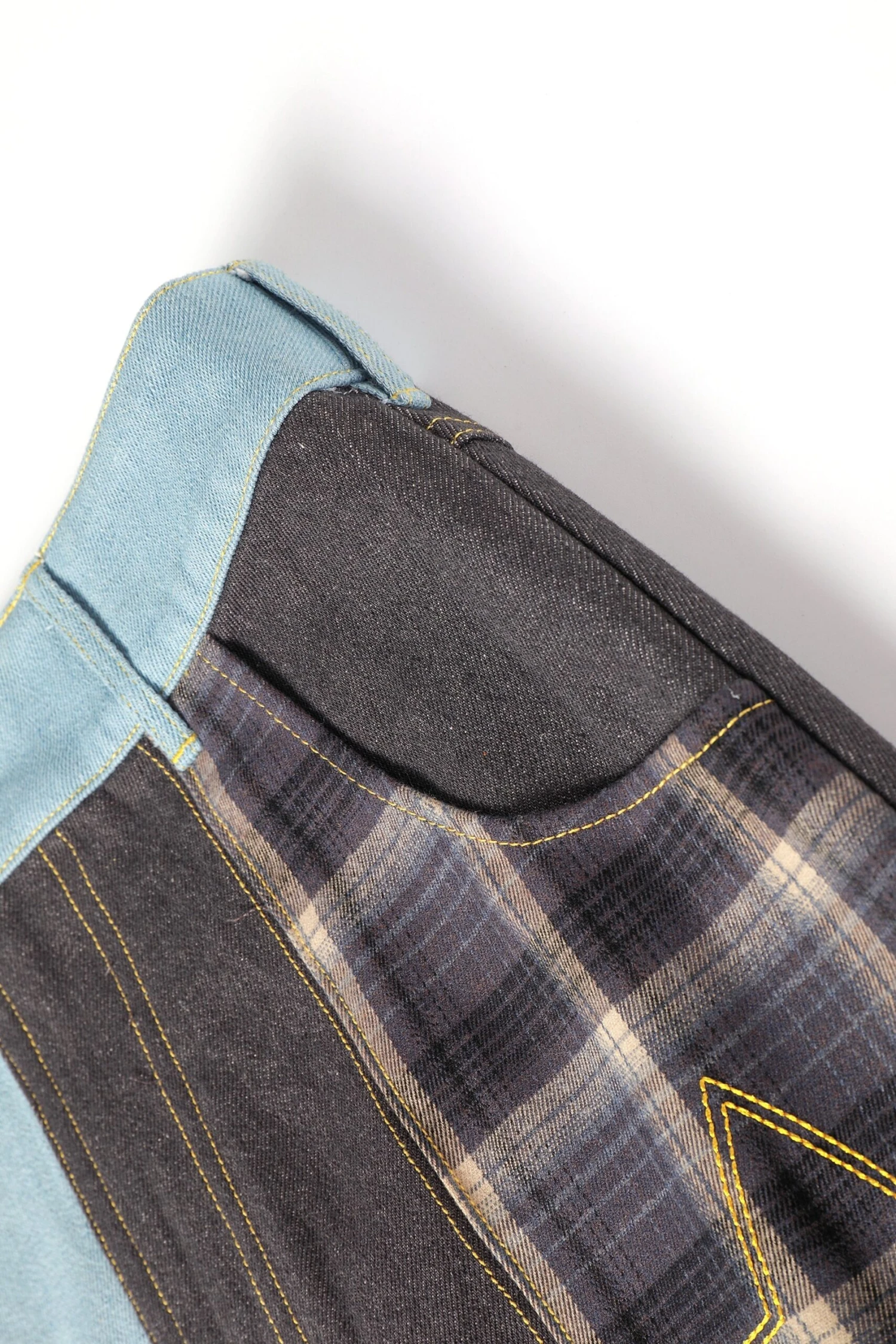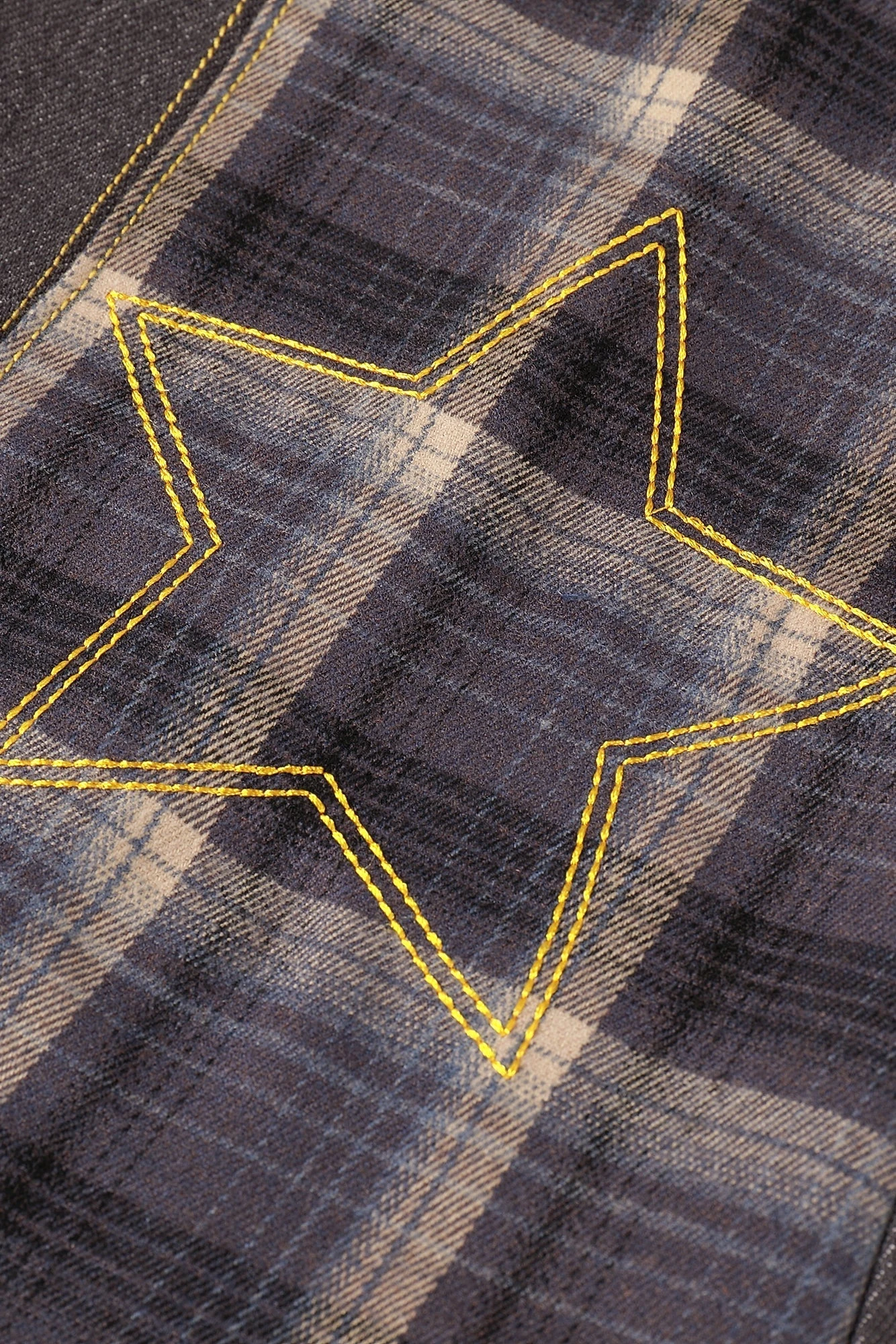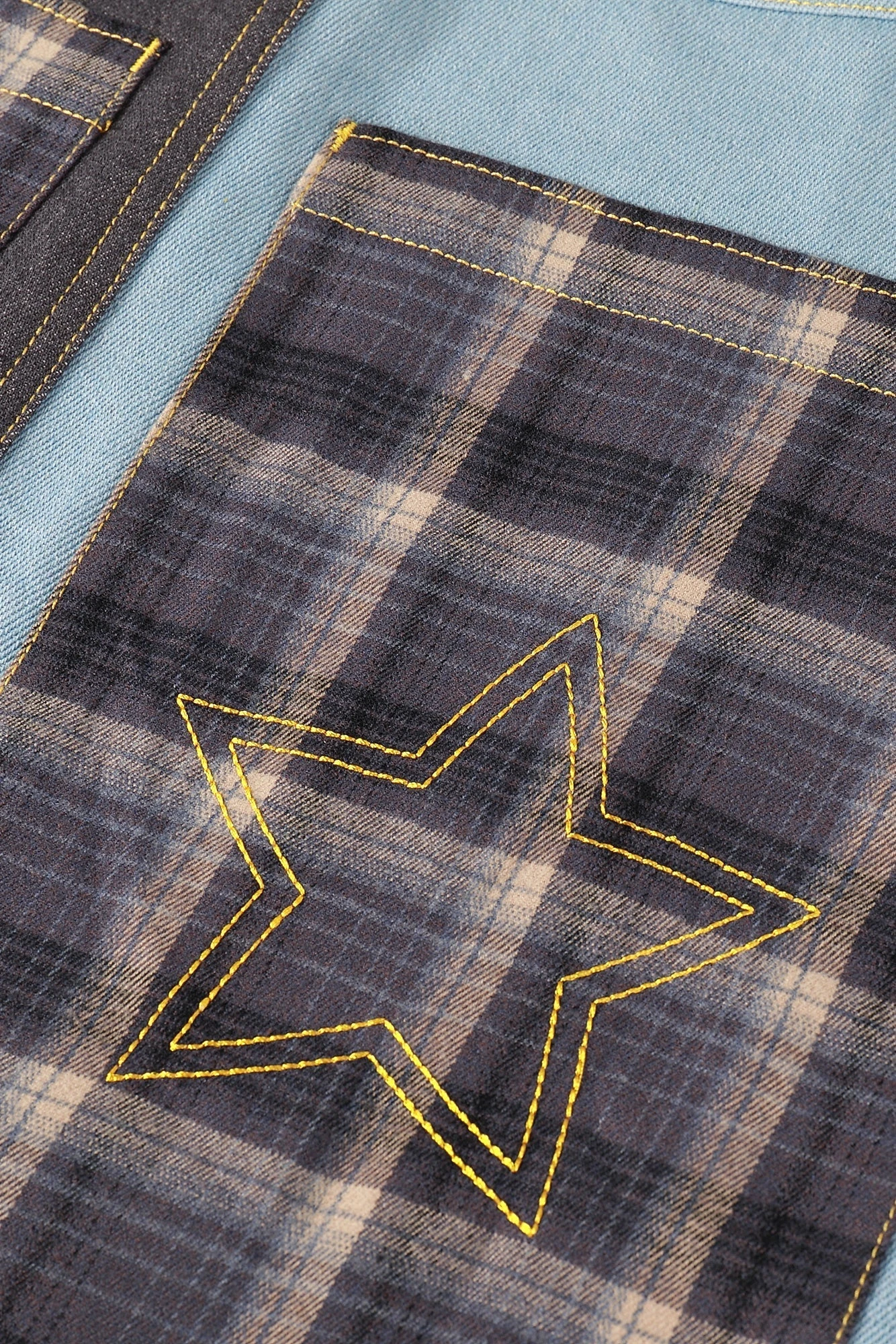 Maxi skirt with deep pockets, traditional denim fly, and star embroidered accents!