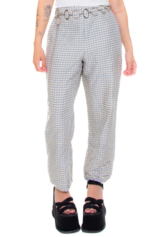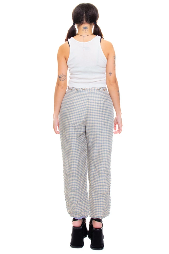 Pale blue and cream gingham check pants in genuine silk!