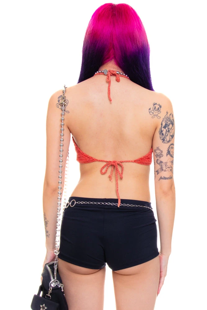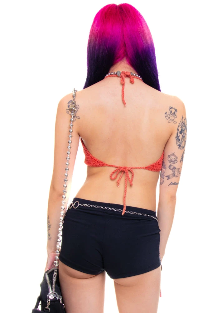 Vintage coral knit halter top in ramie!